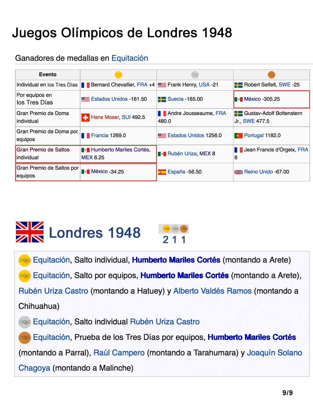Mariles, London 1948 Olympic Games